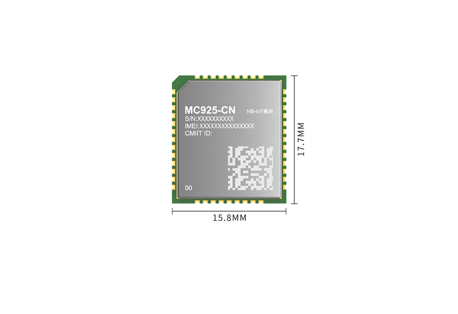 NB-IOT模組:MC925-CN(LTE Cat NB2: B3/5/8) NB-IoT模組 MC925-CN是針對中國區域推出的一款低功耗、純數傳以及高性價比的LTE Cat NB2 無線通信模組,支持B3/5/8頻段,采用LCC封裝,尺寸僅為17.7mm*15.8mm*2.0mm。 more >